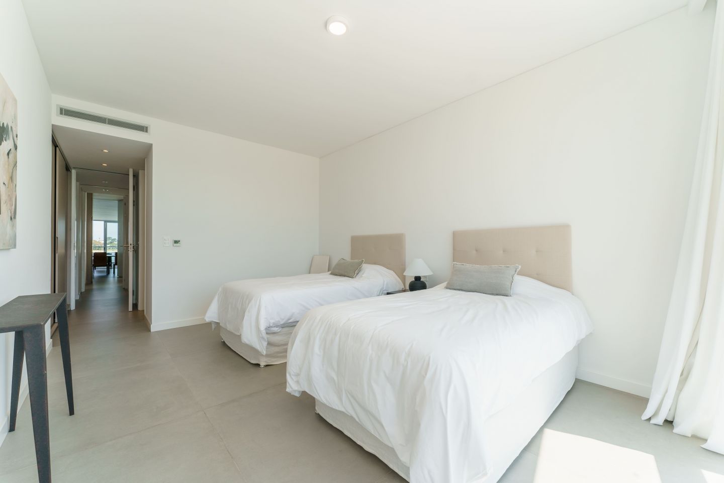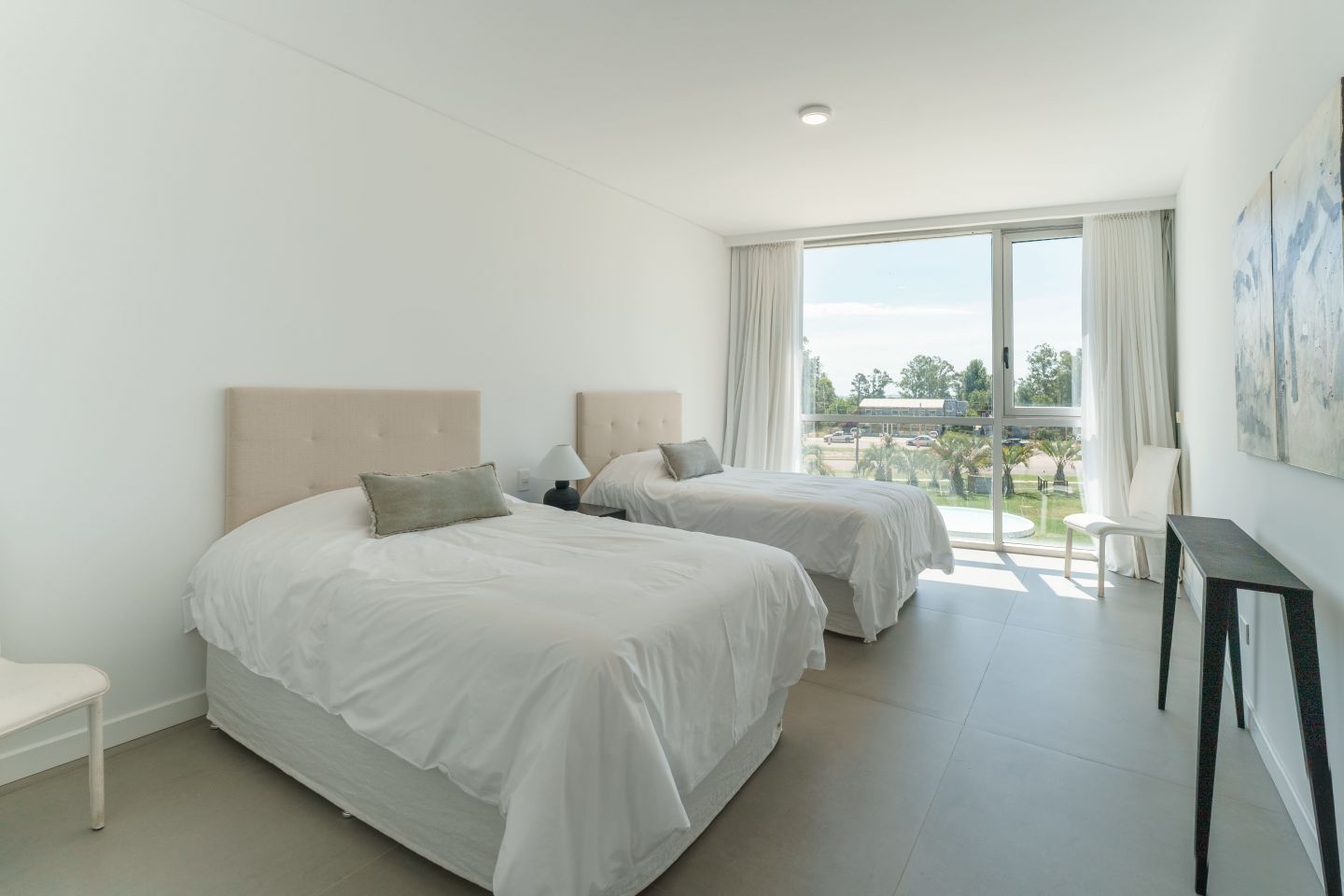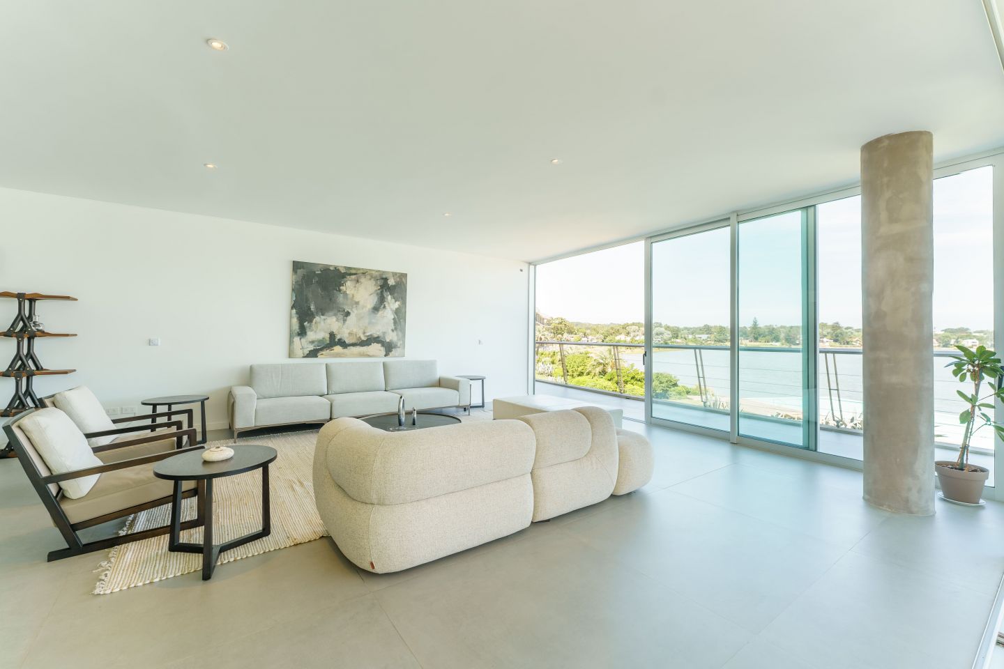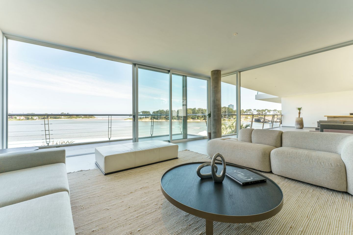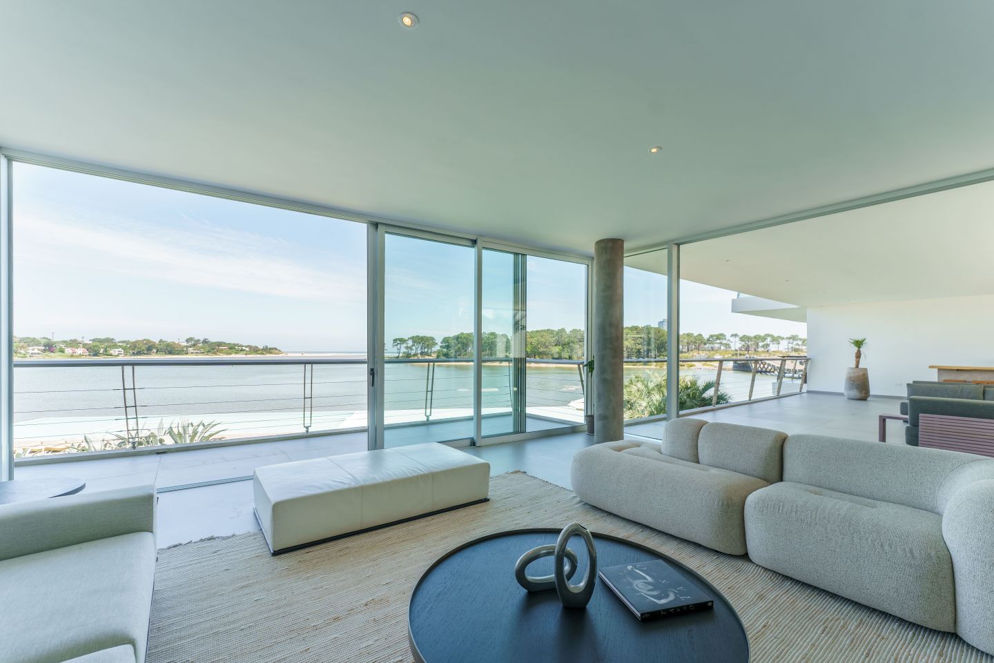 Excelente Departamento en edificio moderno con completos servicios frente a laguna de La Barra. Cuenta con amplio living comedor con hermosa vista a la laguna, salida a amplia terraza lateral con Parrillero, 3 dormitorios en suite ( principal al frente con vista a laguna), toilette, cocina con isla totalmente equipada con electrodomesticos Panelables Beko (Horno, Campana, Anafe, Heladera, Frezzer, Lavavajillas), Gran Estar con Tv Room y dependencia de servicio con baño.  4 garages. Totalmente equipado y decorado. Aire Acondicionado Central y Losa Radiante.